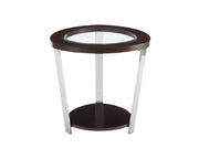 A contemporary styled occasional collection of stainless steel, wood and glass construction, Duncan features a spherical triangular shaped top that will instantly add interest to any room. This 3-Pack of tables includes a Cocktail Table and two End Tables to complete your living room with a rich mixture of elements and espresso finish for a sophisticated modern look.