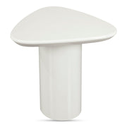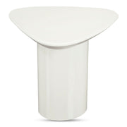 The Eden accent table features a rounded triangular shape and oval pedestal base, creating a sculptural silhouette that exudes modern sophistication. An ivory white and black high gloss finishes this table's surface, reflecting light, brightening and opening up any space.