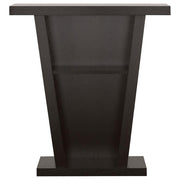 Angular in shape, this console table offers a dynamic design meant to impress. Dress up a transitional room with a space for displaying books, decor, or potted greenery. Luscious cappuccino offers a bold, dynamic finish. An eye-catching slanted silhouette creates a visual treat. Add this console to a central living space or an entryway.
