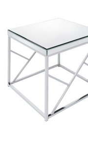 - Constructed of mirror tops and sides with iron base in a chrome finish