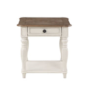 Embrace the classic charm and practicality this Florian end table brings and create a space that is both stylish and organized. The antique white finish of the table exudes a sense of vintage allure, bringing a touch of nostalgia to your home. Its subtle distressed detailing adds character and depth. The oak finish tabletop adds warmth and richness to the overall design. This end table boasts a convenient lower shelf. The shelf offers a perfect spot to display your favorite books, magazines, or decorative items, adding a personalized touch to your living area.
