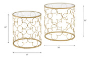Modern clean lines incorporate classic elements to create a fresh new look. The nesting table has a round glass top paired with a open metal frame, exuding a bright, clean, and airy feeling. Luxe gold finish showcases the hollow-out metal frame, enhancing it's romantic quatrefoil motif. The Flowie Neastung Table includes two pieces in different sizes, convenient for your space layout.