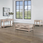 Transform your living space with the Gabby 3-Piece Table Set, an exquisite fusion of coastal elegance and modern functionality. This set, comprised of a Cocktail Table and 2 End Tables, embodies the relaxed charm of California’s coastal ambiance. Crafted from robust Asian hardwoods, rich oak veneers, and reliable engineered woods, this furniture collection is designed to withstand the test of time. Seamless access is at your fingertips with sleek drawers, each featuring metal side glides. These drawers serve as a perfect hideaway for remotes and daily essentials, ensuring your living space remains clutter-free. Enjoy mobility and style with the caster-equipped Gabby Coffee Table, allowing graceful movement around your room. A functional bottom shelf enhances structural stability while providing a canvas for storage or display treasures.
