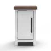 The Hampton 14” Chairside Table delivers a flawless combination of modern farmhouse style and country simplicity. Beautifully crafted from Poplar Solids, Okoume Veneers and Knotty Alder, this accent table features a two-tone Jasmine Whitewash and Barnwood finish and oil-rubbed Bronze hardware. Placed next to your favorite chair or bedside, this side table is ideal to showcase a table lamp up top and store essentials behind one door below. Fully assembled upon arrival, this piece from Bridgevine Home is ready to unbox and enjoy.