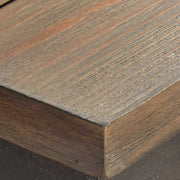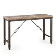 - Styling details include simulated plank top, riveted iron sides and industrial styled undertop stretchers