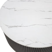 Elevate your living space with this elegantly modern cocktail group, designed to bring both sophistication and functionality to your home. Featuring a luxurious marble-inspired top, this group effortlessly exudes timeless elegance, while the sleek, vertically reeded base in a deep, refined hue adds a contemporary flair. The subtle yet striking gold-finished foundation enhances the upscale aesthetic, creating a perfect balance of opulence and understated charm. Whether placed together for a cohesive statement or used separately to complement your space, this set is the epitome of modern luxury and refined taste.