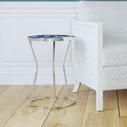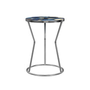 The Lauer Accent Table is perfectly scaled for a chairside table to display flowers and hold drinks. Features a blue agate stone top supported by a thin, silver stainless base.
