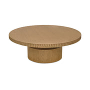 Not your average coffee table. Leigh makes a bold statement with a thick, round table top edged in a playful scalloped detail. Its stacked cylindrical base balances lightness with grounding presence, finished in oak veneer over MDF with a solid oak edge. Built for everyday living