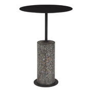 Gentle in nature, this piece is suited for adding a subtle layer to the living room. The Lillith accent table contemporary look comes from a clean matte-black finish, accompanied by a black terrazzo base. A focus on muted shades and minimal presentation adds a modern feel. Place the Lillith accent table with a darker shaded sofa for a sleek aesthetic.