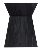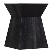 The charming and chic Linville Falls End Table has a square top and base and a center in an hourglass shape. The character-filled Shadow finish is in a charred black color achieved through Shou Sugi Ban, a Japanese technique that creates a look resembling burnt wood.