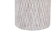 Discover the Lorenzo Accent Table, where coastal farmhouse styling meets craftsmanship perfection. Featuring a solid mango base with delicate carving and a sandblasted white-wash finish, paired with a travertine top, it's a harmonious blend of warmth and sophistication. The natural touch of mango wood and travertine creates a welcoming ambiance.