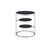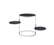 Eyes will be on it. This modern side table presents the opportunity to show off your style while brighten up your living space. Circular metal base features a minimal and weightless aesthetic ,with swivel shelf design that makes a brilliant display area. Shiny chrome finish on the frame beautifully contrasts black glass table top, giving the designs more fresh and contemporary look. Add this stylish and functional addition to your room decor.