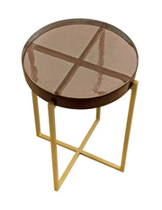 - Round cast glass top with unique textures and details
