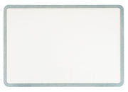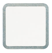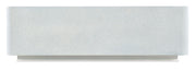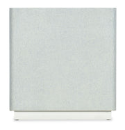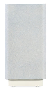 Serene and stylish with a spa-like color scheme, the modern Atlantis Table has a rectangle shape, rounded corners, a painted tempered glass top, raffia-wrapped exterior and white plinth base. The top is painted in a creamy white tone, and the raffia wrap is in a pale blue tone inspired by Caribbean beaches.