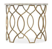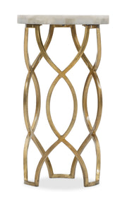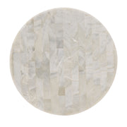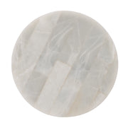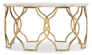 Add a sparkle of timeless Art Deco style to any living space with the Mélange Corrina Table, blending a gold-leaf metal fretwork base with a White Onyx Parquet top for an airy and uplifting look.