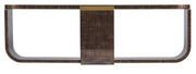 With a unique silhouette and X-motif base, the Edmun Cocktail Table is a striking addition to any living space. Featuring a rectangle shape with round edges, the table is crafted of Maple Veneers in a dark wood finish with gold accents.