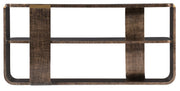 With a unique silhouette, rich finish and metal accents, the Edmun Sofa Table is a striking addition to any living space. Featuring a rectangle shape with rounded edges, the table is crafted of Maple Veneers in a dark wood finish with metal caps. One fixed shelf in the center.