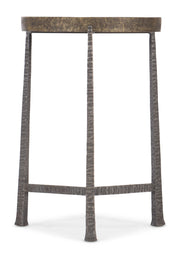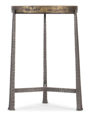 With a handcrafted appeal, the Funda Accent Table combines organic and industrial influences in a convenient, compact 16 ½ by 16 ½ round footprint. Crafted of hammered iron and cast aluminum in a distressed gold metal finish, the top sits on a metal base.