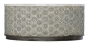 With a look of exotic elegance, the Greystone Round Cocktail Table combines a serene monochromatic color scheme with a carved geometric floral pattern. Crafted of Oak Veneers and resin, this unique piece adds character to any space.