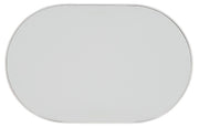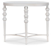 With its white textured finish and beveled glass inset, this oval end table brings light and elegance to your décor. Ideal for minimalist or coastal-inspired spaces.