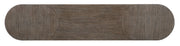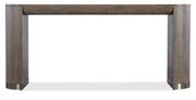 Architectural and timeless with a luxe mixture of materials, the striking Modern Mood Console Table has a narrow, rounded rectangle shape and metal-wrapped bands on the legs. Crafted of Quartered Oak Veneers in a dark Mink finish, the table has a rounded apron and legs, matched veneers on the top and is finished on all sides. At only 16 inches deep, the console can add style to even tight spaces.