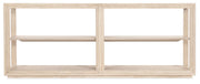 A brilliant blend of materials, the Nouveau Chic Rectangle Console Table combines Oak Veneers, tempered glass and a metal frame. The beveled-edge glass top looks down onto the middle wood shelf and bottom shelf featuring a dramatic sunburst veneer pattern. Finished in the serene Sandstone finish with light wire brushing for tactile appeal. With a slim 16-inch depth, this piece adds design and function to even tight spaces.