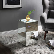 - Beveled Mirrored Top with Faux Gems Inlay & Clear Glass