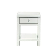The Nysa Accent Table will give any room a touch of glamour. Mirrored finish and glass surfaces give it a modern and clear touch while faux crystals inlays add glam style to this piece. Use this unique piece as the perfect accent for any room decor. It has a tier shelf and a storage drawers with self closure and safety stop, providing ample and convenient storage.