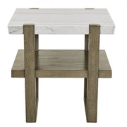 Elevate your space with the Marble Top Table, a stunning accent piece for any room. Crafted from veneers and hardwood solids, it features a striking white marble top paired with weathered solid wood legs, adding sophistication to your decor. With a built-in shelf for display or storage, and a bold, substantial frame, this table offers both functionality and elegance, making it a standout addition to your home.