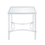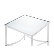 KD, Square Leg End Table • NO Storage (Open Base) • Beveled Mirrored Top & Chrome Finish Legs •• CONSTRUCTION •• Mirror Top: 5mm Mirror with Beveled Edge (No Apron) • Metal Straight Leg, Top Trim & "Diamond" Crossbar Support Frame: Chrome Finish, Metal Tube (13 x 26 x 1.2mm)