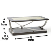 With its transitional styling, Ramsey creates quite a statement in any living area. Sweeping stainless steel support legs create a dramatic effect that is beautifully complemented by the antiqued mirror top insert. This dichotomy of old world meets new age gives the collection a classic, yet up-to-date feel that will brighten any room.