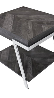 Contemporary style in a shadow grey finish, Roma offers aesthetic and practicality in one package. The End Table features Silvershield® tops that resists mars and scratches in a mixed media package with canted chrome leg that gives the table an aggressive modern profile. Bottom shelf adds valuable space for display or storage and the table pairs seamlessly with other tables in the Roma collection.