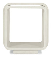 Soft, modern and organic, the Kai Bunching Tables in a rounded rectangle shape are crafted of Wood and Raffia in the soothing Sand Dollar finish, a white lacquered grasscloth. The smaller table fits inside the larger table and can be used separately from the larger table.