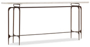 Inspired by nature’s landscapes and crafted of organic materials, the Skinny Metal Console combines an antique copper-colored iron base with a marble top. Finished on all sides, the console adds the authenticity of the outdoors to any space.