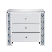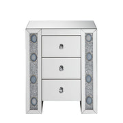 Assambled, Rectangular Table • Beveled Mirrored Finish, Clear Glass with Faux Agate & Faux Diamonds Inlay (Back Unfinished) • Orientation: Free Standing • Storage: 3 Drawers (Open Base) •• CONSTRUCTION •• Mirrored Case-Frame & Drw: Mirror, MDF (Fixed Top) • Mirrored Sled Base: Clear Glass with Faux Agate & Faux Diamonds Inlay, Mirror, MDF •• Drawer: GLIDE Side Metal (Ext. 2/3), Dovetail French Front, Felt-Lined Not Included, Safety Stop Not Included, Manual Close, Hardware: Crystal like, Single Knob