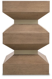 Symmetrical and chic, the Sonnet Square End Table design is a chunky geometric shape with two satin-finished metal waistbands. In a convenient, compact footprint that’s 16 inches square, it is crafted of Quartered and Cathedral-Cut White Oak Veneers in a light earthen-toned finish.