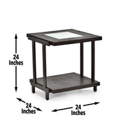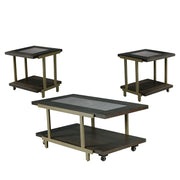 The Terrell collection of living room tables presents a captivating fusion of rustic charm, industrial style, and subtle hints of Craftsman design. With Coffee and End Tables available, these exceptional pieces boast a mix of materials that create a visually striking aesthetic. Highlighting tempered glass insert tops, these tables reveal a delightful corrugated metal underlay that adds texture and allure. Satin brass side panels evoke a sense of warmth and sophistication while perfectly complementing the sophisticated smoky brown finish that highlights the grain and character of the ash veneers. The Coffee Table, featuring casters, provides effortless mobility, allowing for easy cleaning or adjusting to accommodate motion upholstery. Both tables are equipped with a convenient bottom shelf, offering ample space for displaying your favorite items or storing essentials.