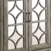 The transitional Velinka Console Table features mirrored glass doors and a diamond trim inlay.