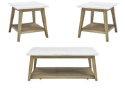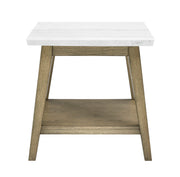 Scandinavian styling meets Mid-Century Modern design in this clean, simple yet elegant set of tables. A beautiful white marble top with a knife edge immediately grabs your attention as it sparkles in the light. Canted legs and a bottom shelf add look and function to this table set of Cocktail and 2 End Tables. Gently move the Cocktail Table out of the way when cleaning with the aid of the four bottom casters.
