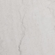 - Styling details include a 7 mm white marble veneer top with knife edge, modern canted legs and bottom stretcher shelf for storage or display