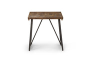 A transitional styled Side Table for living room or bedroom, the Walden End Table brings mixed media and excellent craftmanship to brighten any room. A neutral black iron base complements the lustrous chestnut finished top laid in a signature parquet pattern. Lively, rustic and eclectic, Walden can complement any decor.