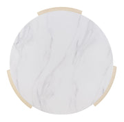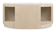 Understated luxury defines the Westwood Table, featuring a Volakas stone top and quartered oak veneers in a Polished Limestone finish. The open base is ideal for styling books and décor, embodying the soft modern aesthetic.