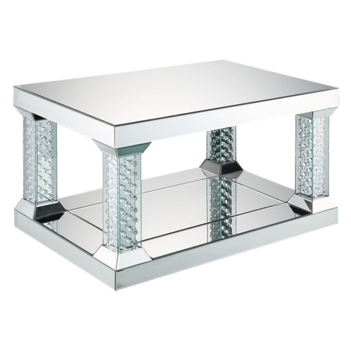 Nysa - 36" Coffee Table - Mirrored & Faux CrystalsProduct Features Rectangular Coffee Table Storage: Open Compartment (Mirrored Base Shelf) Bev...