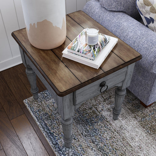 Simply charming with its graywashed weathered finish and contrasting medium brown top, the Plymouth end table adds both function and style to livin...