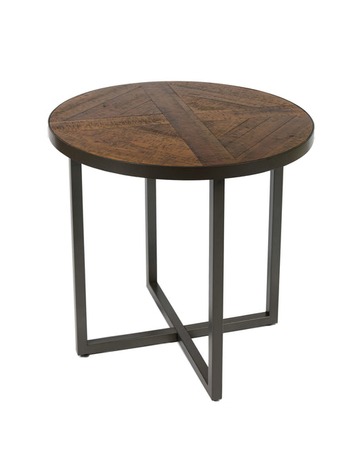 View full detailsEscape - Round End Table With Shelf - Glazed Natural Oak / Black Metal Trim