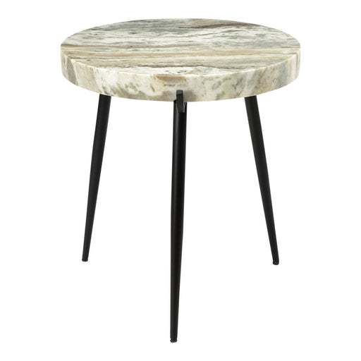 A sturdy iron base cradles a generous slab of marble in the Brinley marble accent table. Light brown marble creates a warm feel, while a polished f...