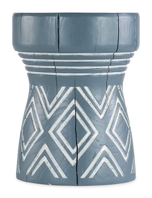 Globally inspired, the Commerce & Market Side Table combines a white Travertine Stone top in a screen-printed diamond pattern with a lightly-sc...
