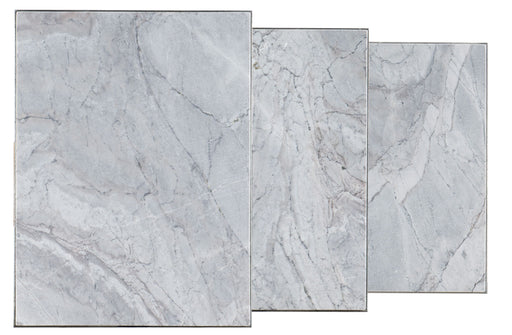 With the look of metal tapestry, the set of three Bianca Nesting Tables have tactile and textural distressed gray metal bases and San Juan Slate st...