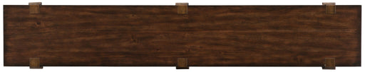 Create a refined rustic ambiance with this stylish mixed media console combining Acacia Veneers, metal sheet and resin in a dark wood distressed fi...
