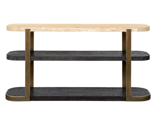 View full detailsAvalon - Console Table - Bronze Metal Frame With Travertine & Espresso